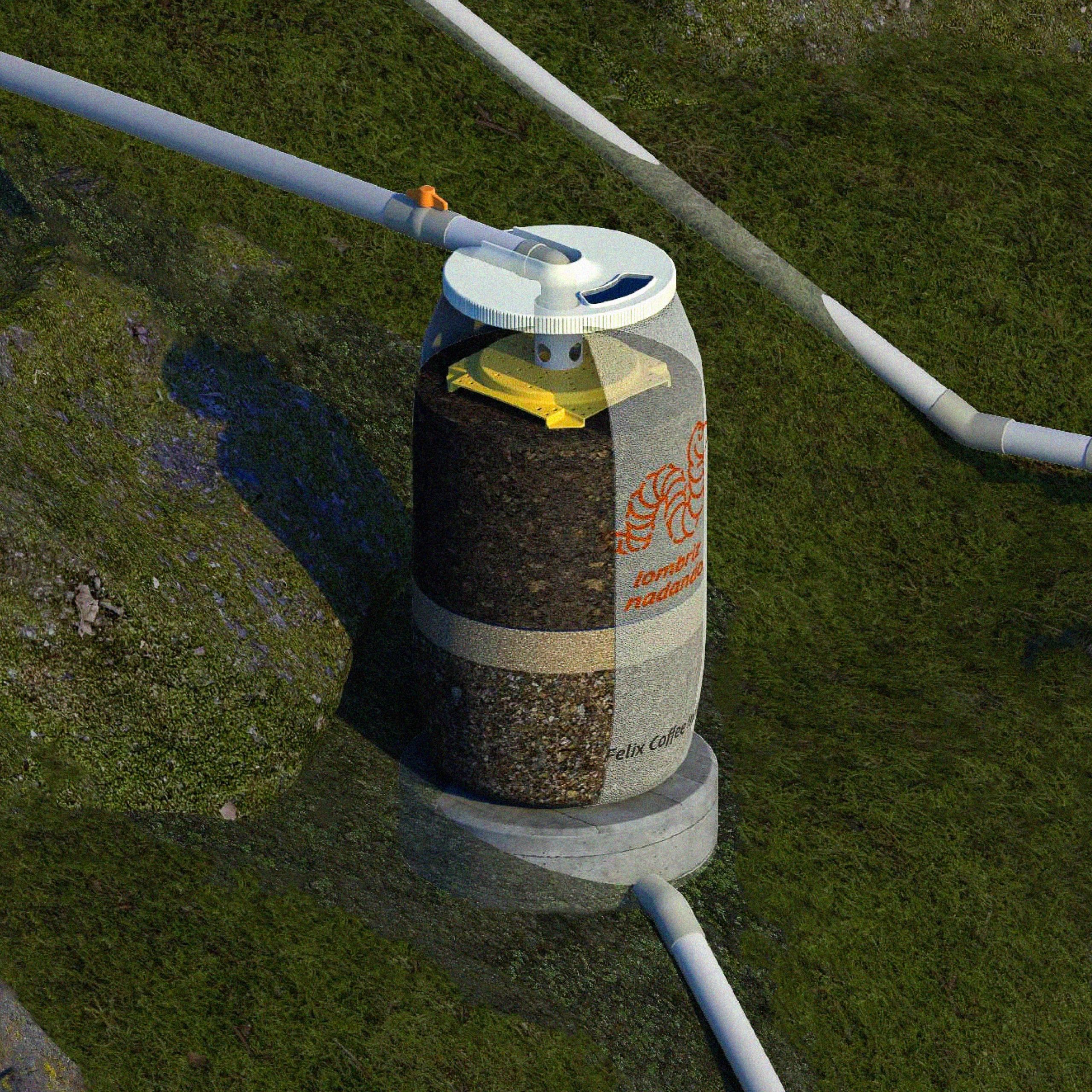 BioBrew filter tank operating on a small coffee farm in Colombia, treating fermentation wastewater on site.