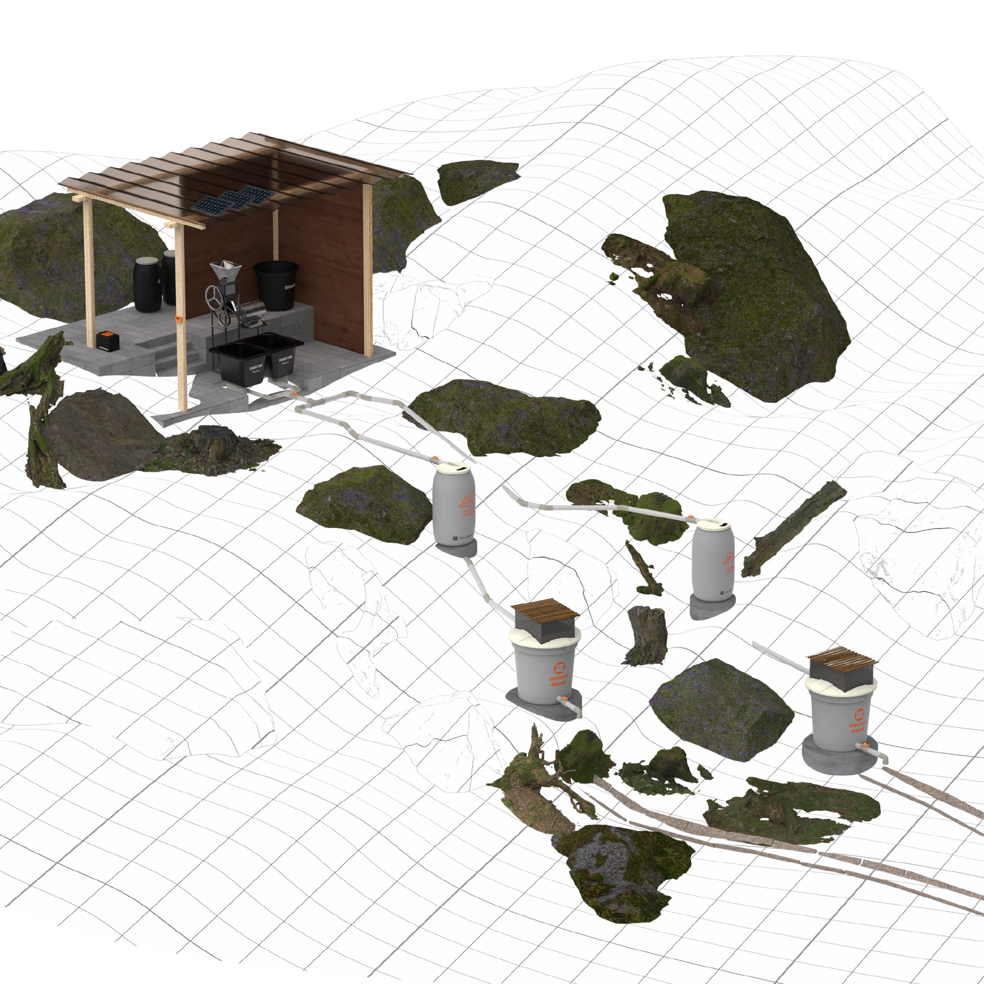 Based on aerobic vermifiltration, designed for on-site operation and real farm conditions.